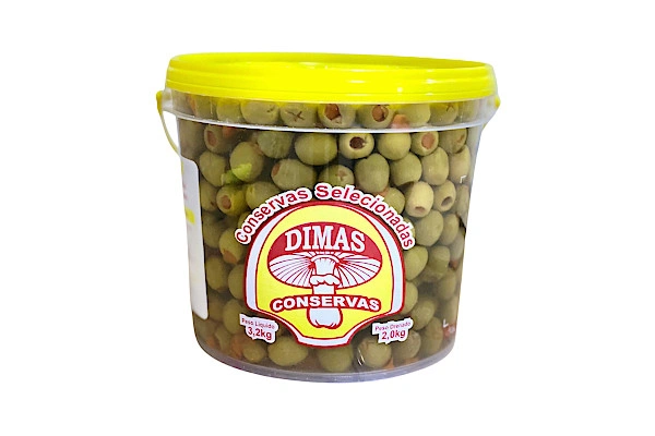 Azeitonas verdes, água, sal, acidulantes ácidos cítricos e conservador benzoato de sódio.